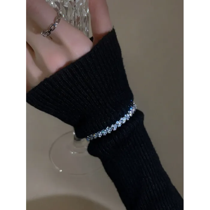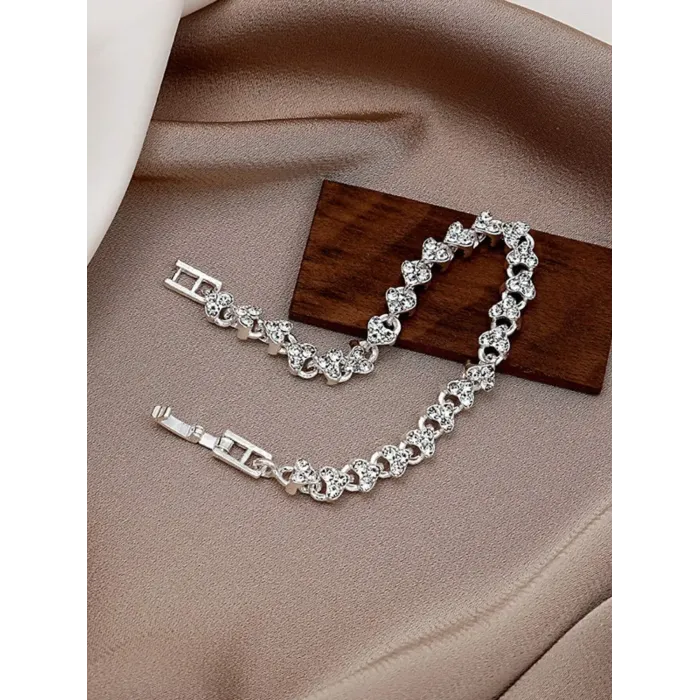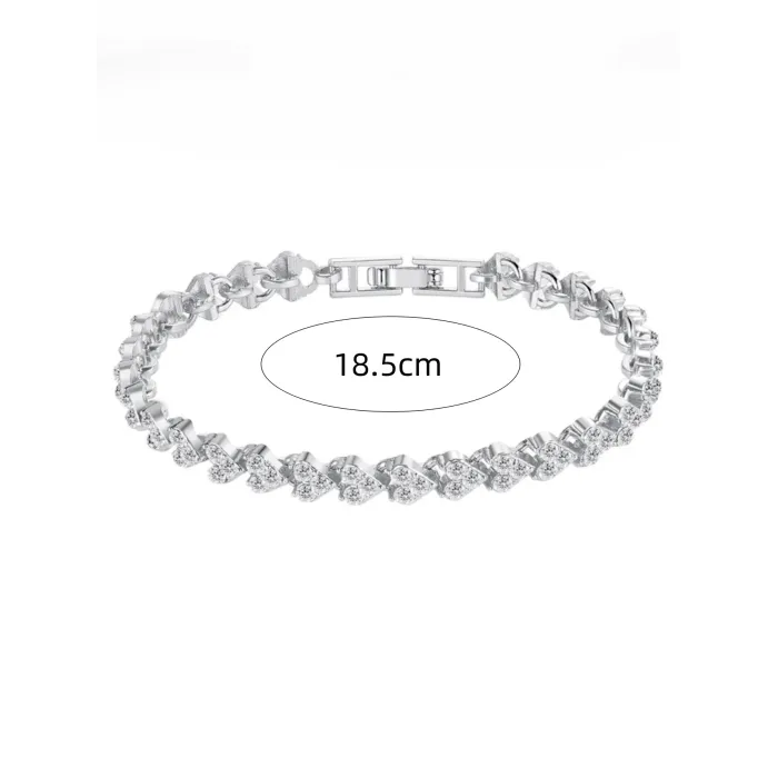 \nThe bracelet is fully encrusted with high-quality, brilliant-cut cubic zirconia, creating a continuous line of sparkle that mimics real diamonds. The subtle love heart accent adds a romantic, elegant touch, perfect for elevating any outfit.
