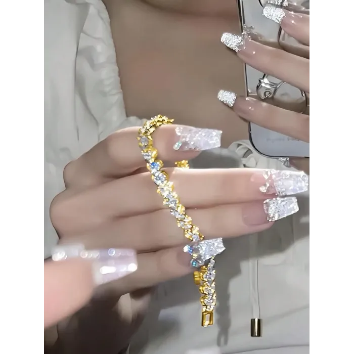 1pc Luxurious High-End Love & Diamond Decoration Shiny Bracelet,Suitable For Women To Wear On Daily,Festival And Party Occasions