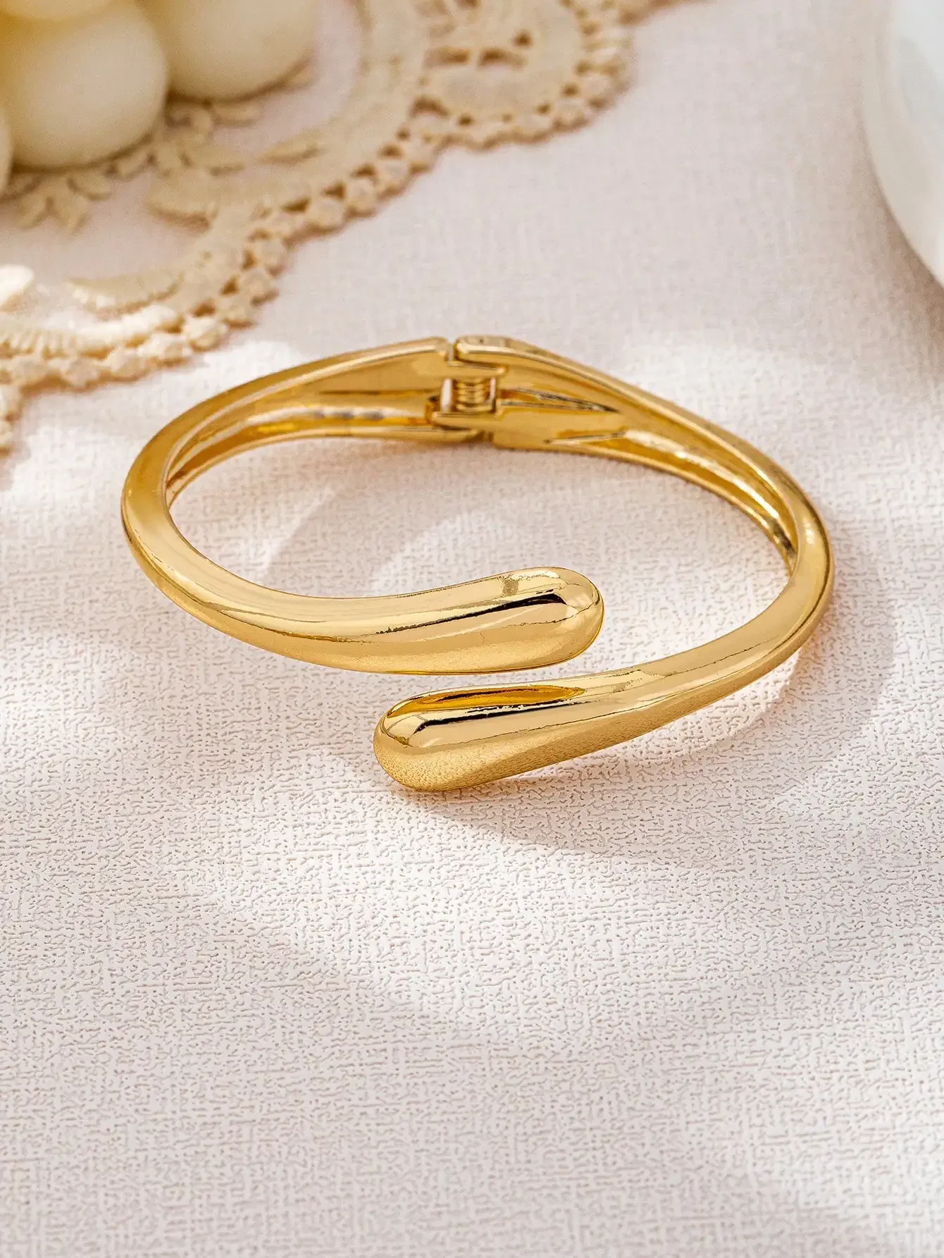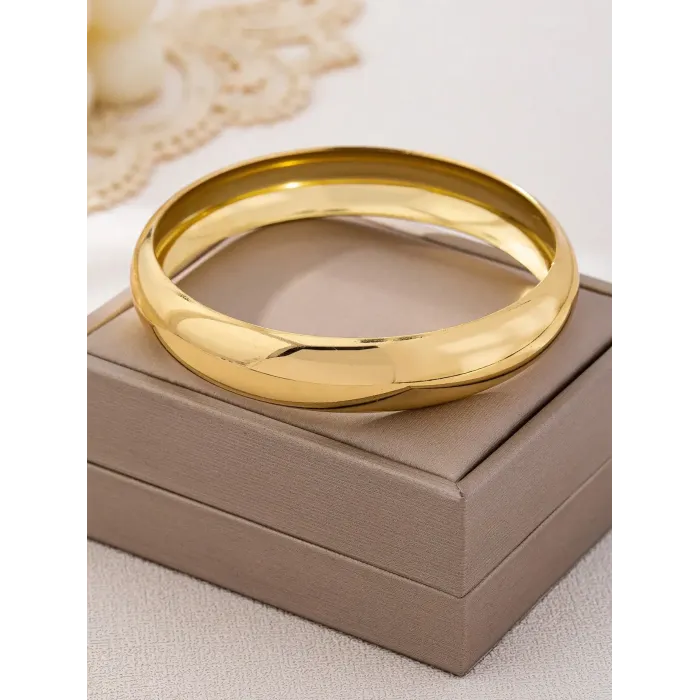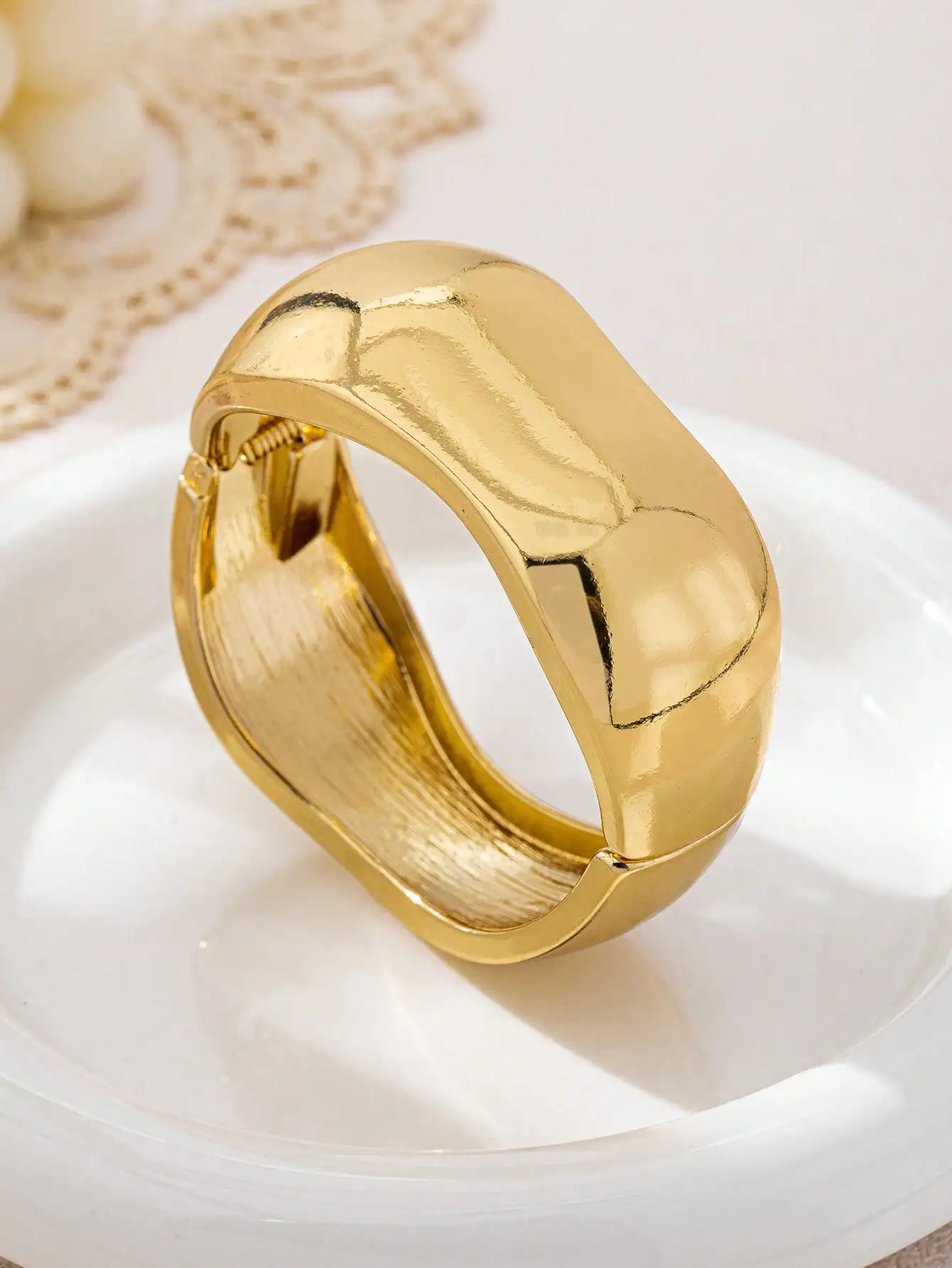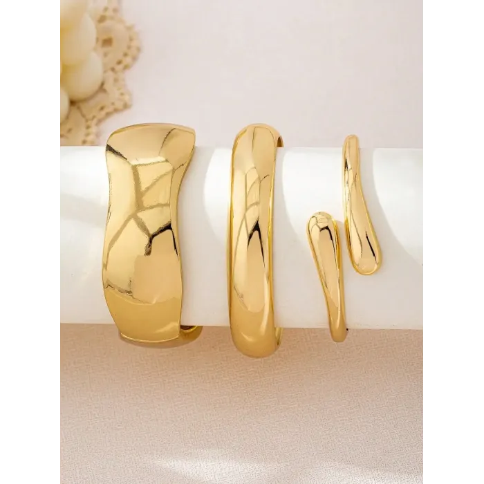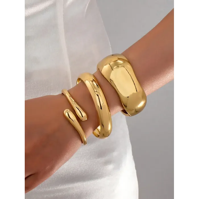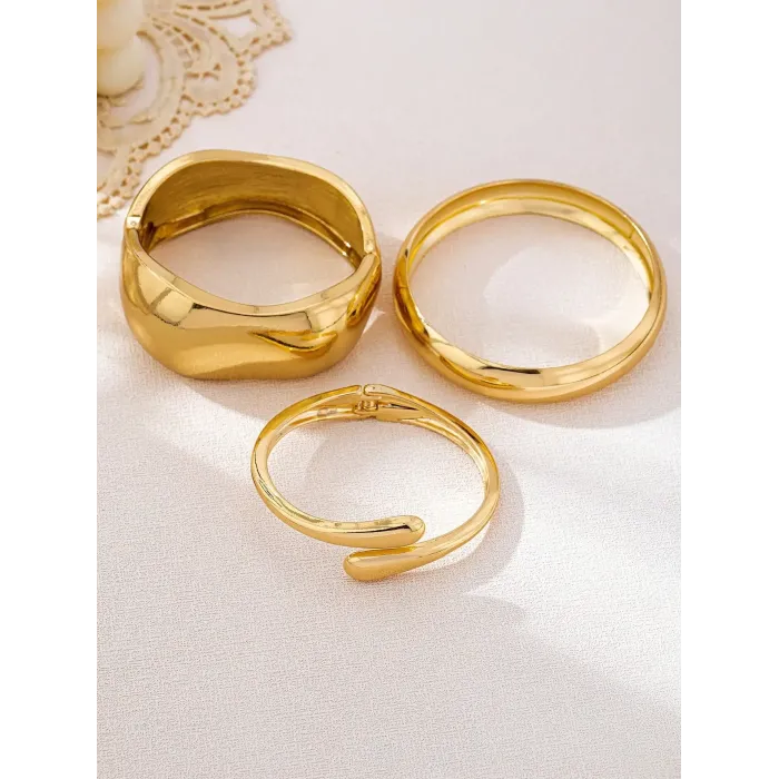 3pcs/Set Minimalist Geometric Metal Bangle Bracelet Set, Thick Solid Gold-Tone Alloy Material, Suitable For WomenCV