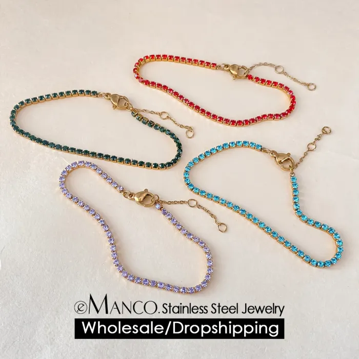 eManco Stainless Steel Women's Zirconia Tennis Bracelet Classic Bridal Accessories Wholesale