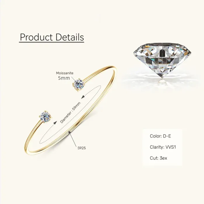 - Model Number: 925 Sterling Silver Round Cut Moissanite Cuff Bangle\n \n