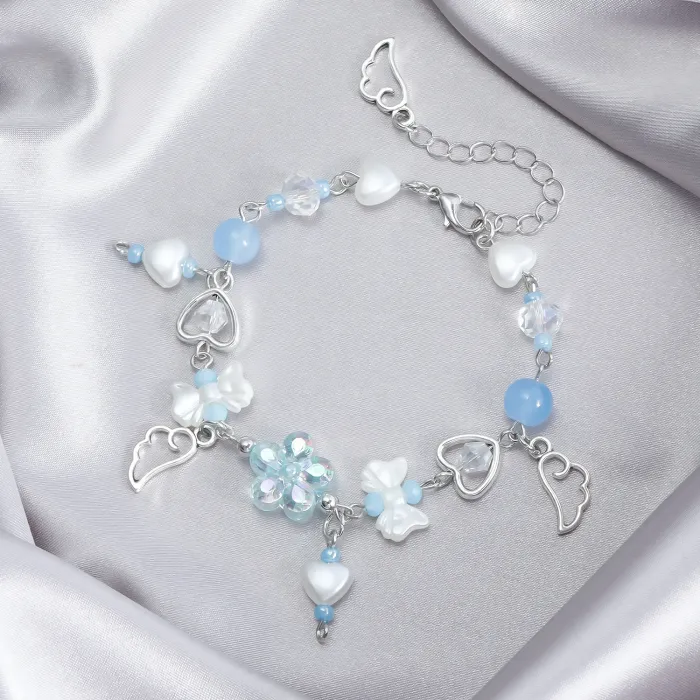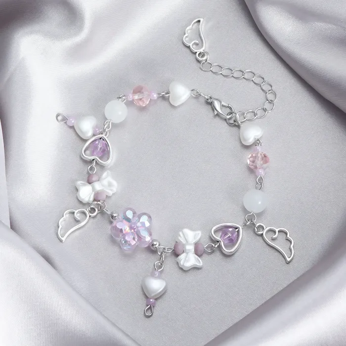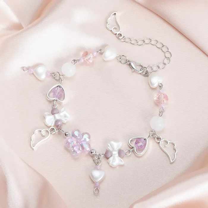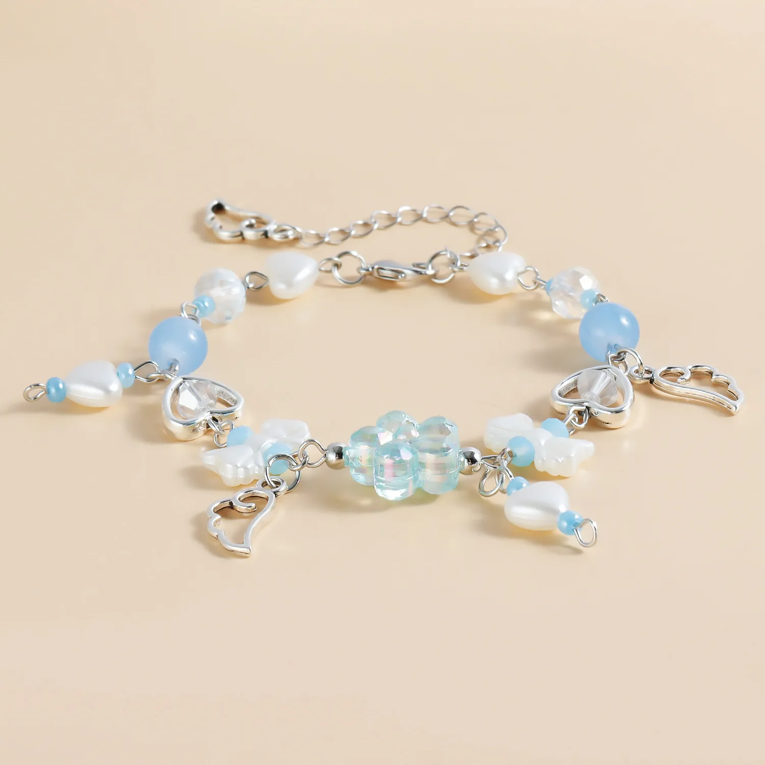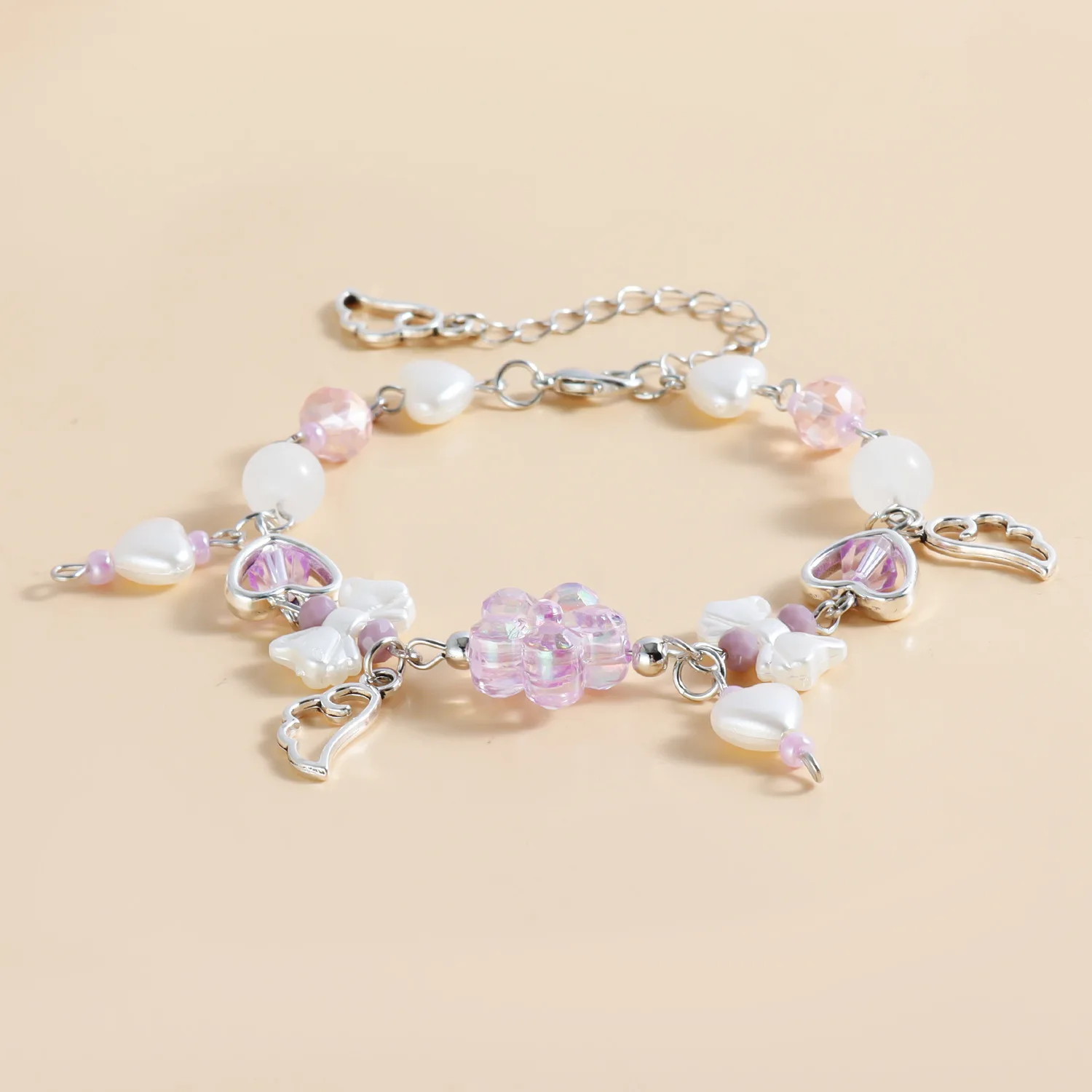 \n\nY2k Bead Bracelet With Women's Countryside Style And Ice Transparency, Colorful Love Bow, Cloud Tassel Bracelet Suitable Parties