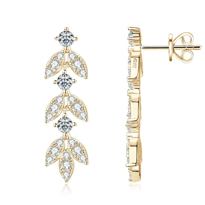 • Model Number: Leaf Moissanite Long Drop Earrings Studs\n