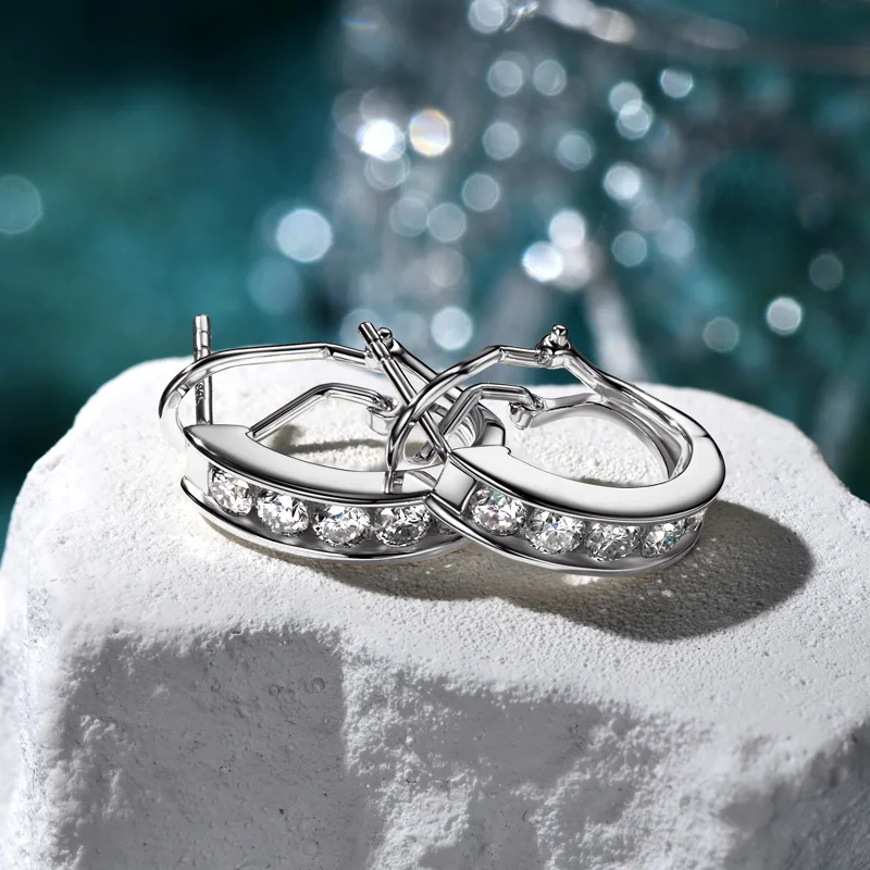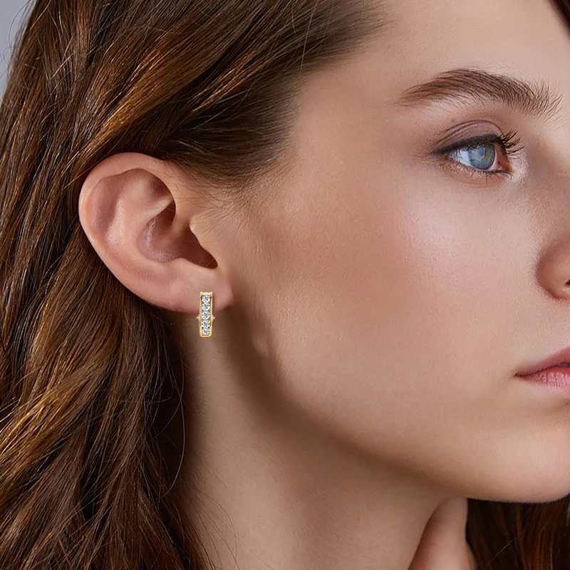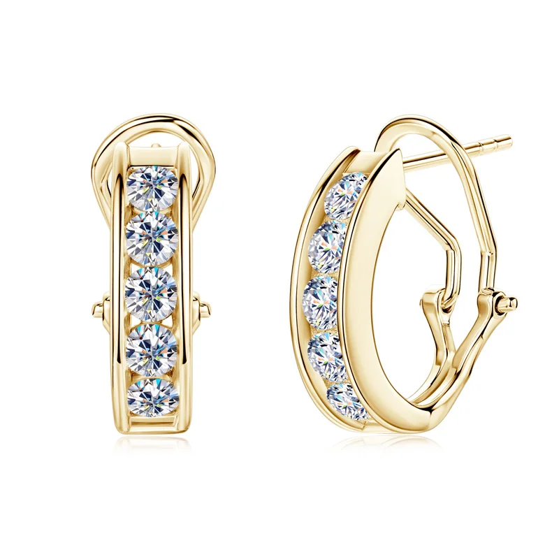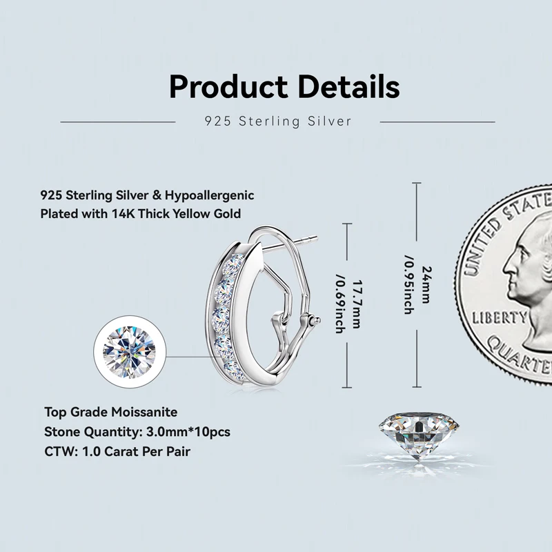 IOGOU 1.0CTW. 3mm Moissanite Hoop Clip Earrings Gold Plating 14k 925 Silver Hypoallergenic Earrings for Women Luxury Jewelry
