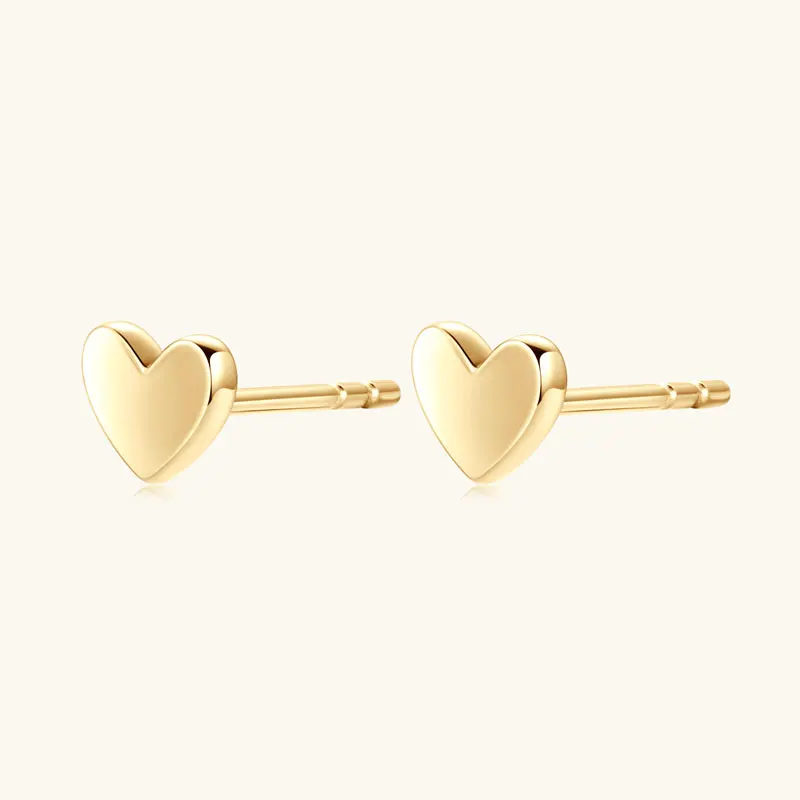 IOGOU 10K Solid Gold Mini Heart Stud Earrings for Women Men Engagement Party Trendy High Quality Fine Jewelry Accesories Gift