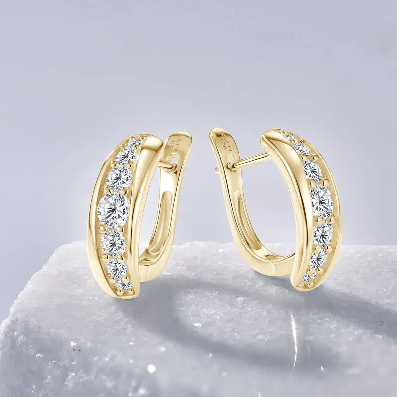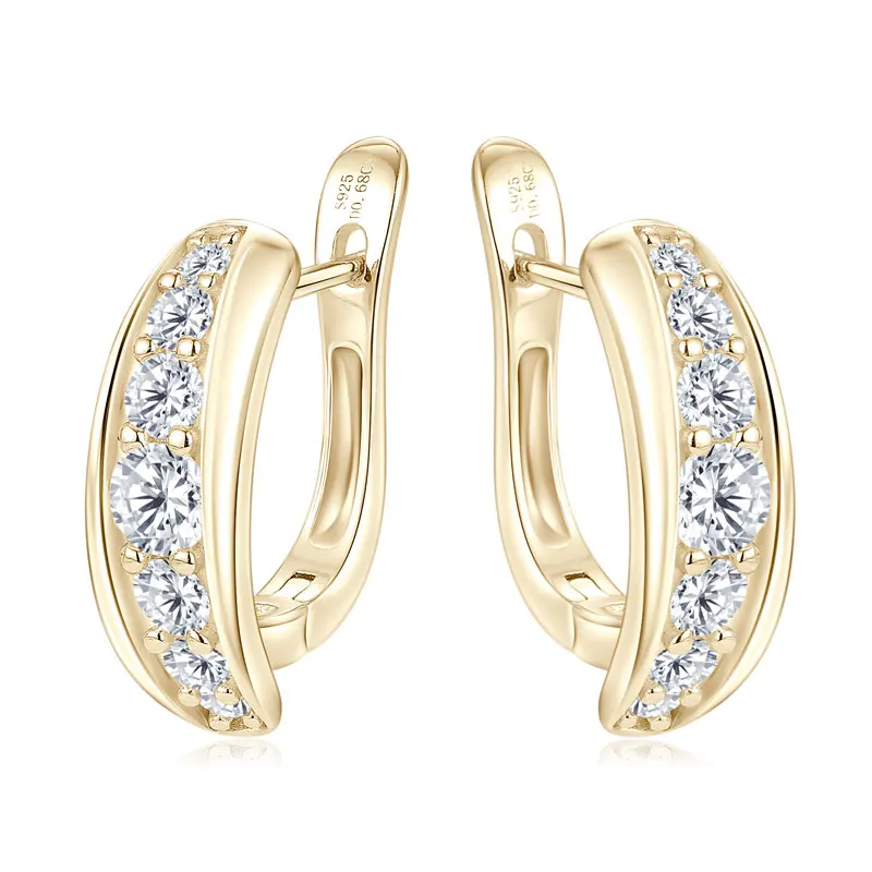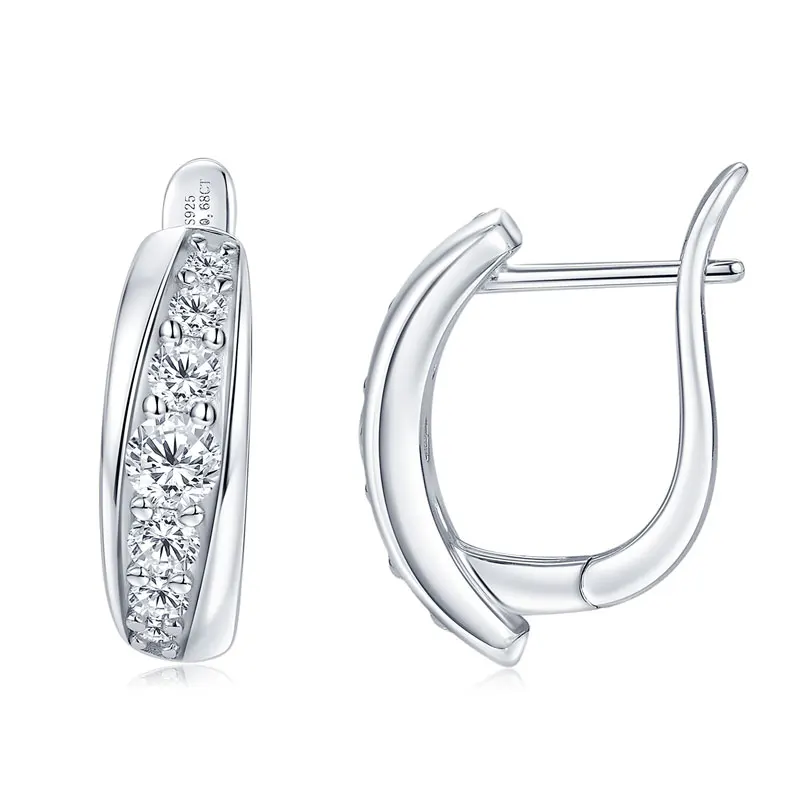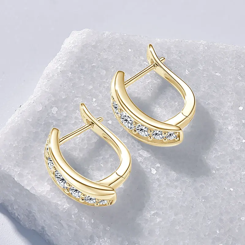 IOGOU 925 Sliver U-Shaped Hoop Earrings D Color vvs1 D0.68CT Full Moisanite Huggie Earrings for Women Trendy 2025 Fine Jewelry