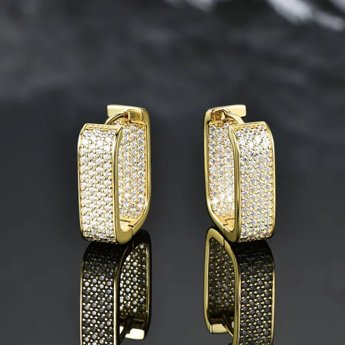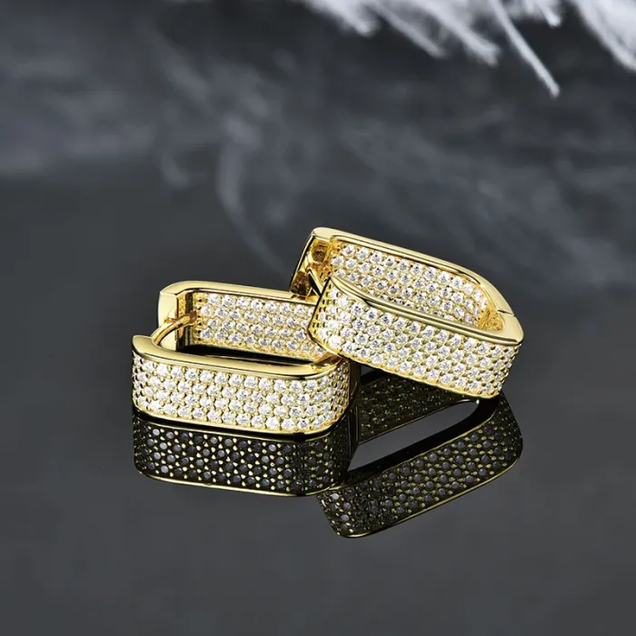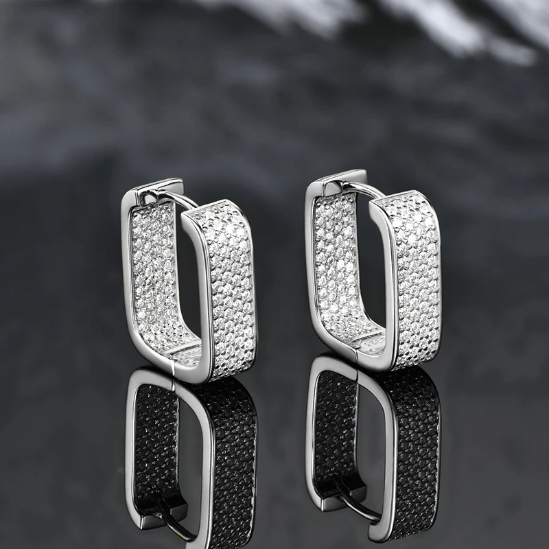 IOGOU 925 Sterling Silver Full Moissanite Diamond Earrings Square Hoops for Women Fashion Ice Out Hoop Earrings Fine Jewelry GRA