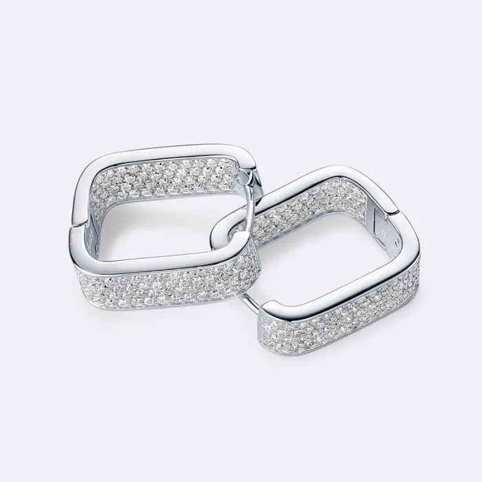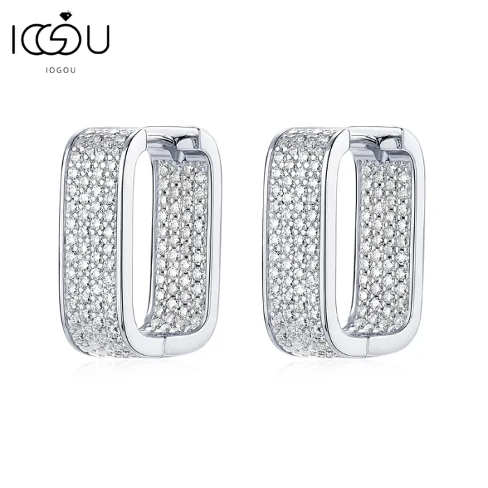 IOGOU 2023 Korean Fashion Paved Moissnaite Square Hoop Earrings for Women Original 925 Sterling Silver Earrings Luxury Jewelry with GRA Certificate