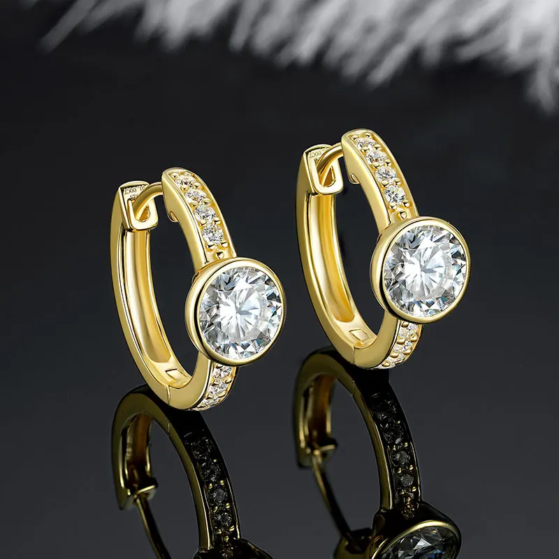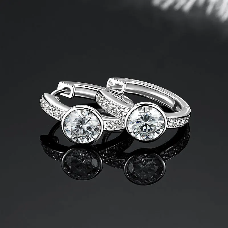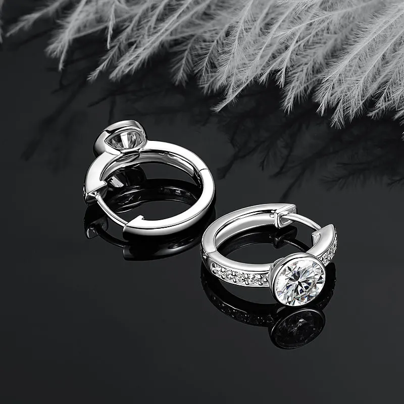 IOGOU Classic 6.5mm 1ct Round Moissanite Small Hoop Earrings Huggies Stud 925 Silver Valentine's Gift Women's Jewelry Certified