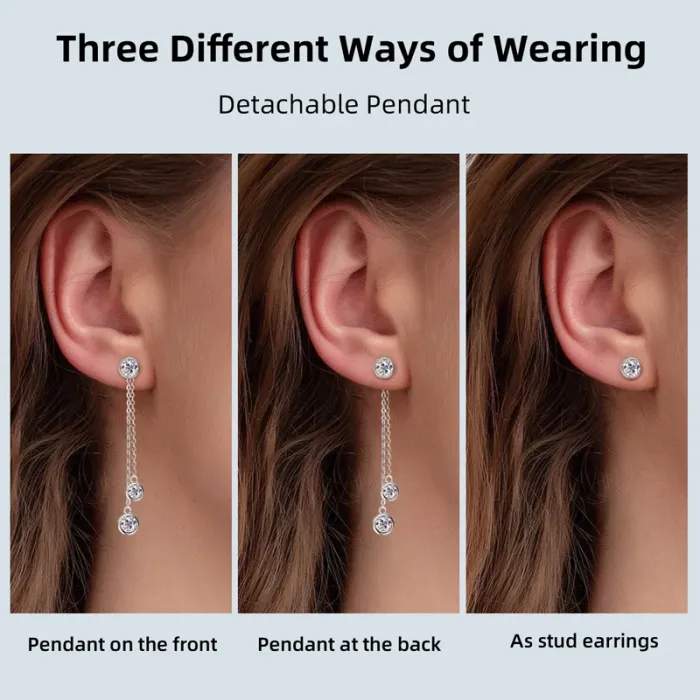 IOGOU Detachable Moissanite Pendant Drop Earrings Long Tassel Piercing Stud Earrings Real Silver 925 Sterling for Women Jewelry