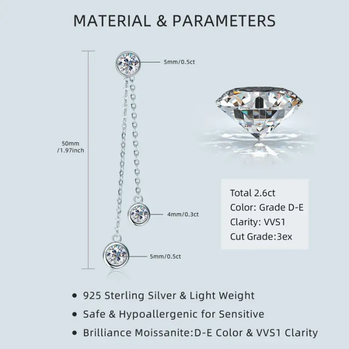 - Model Number: Moissanite Chain Dangle Earrings\n \n