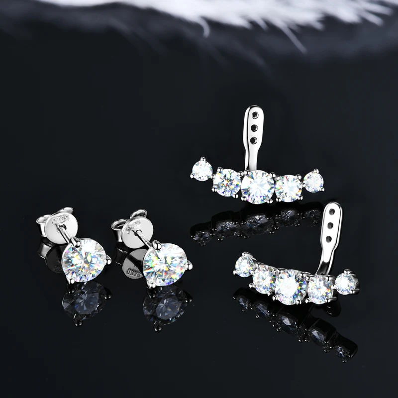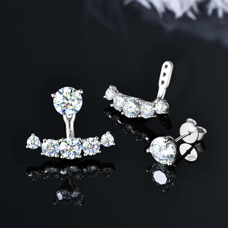 IOGOU Luxury D2.30CT Full Moissanite Diamond Jacket Earrings for Women Silver 925 Double Use Style Stud Earrings Wedding Jewelry