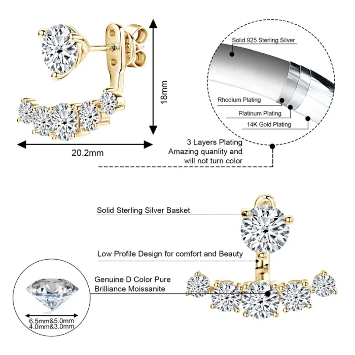 - Model Number: Moissanite Ear Jacket Earrings\n \n