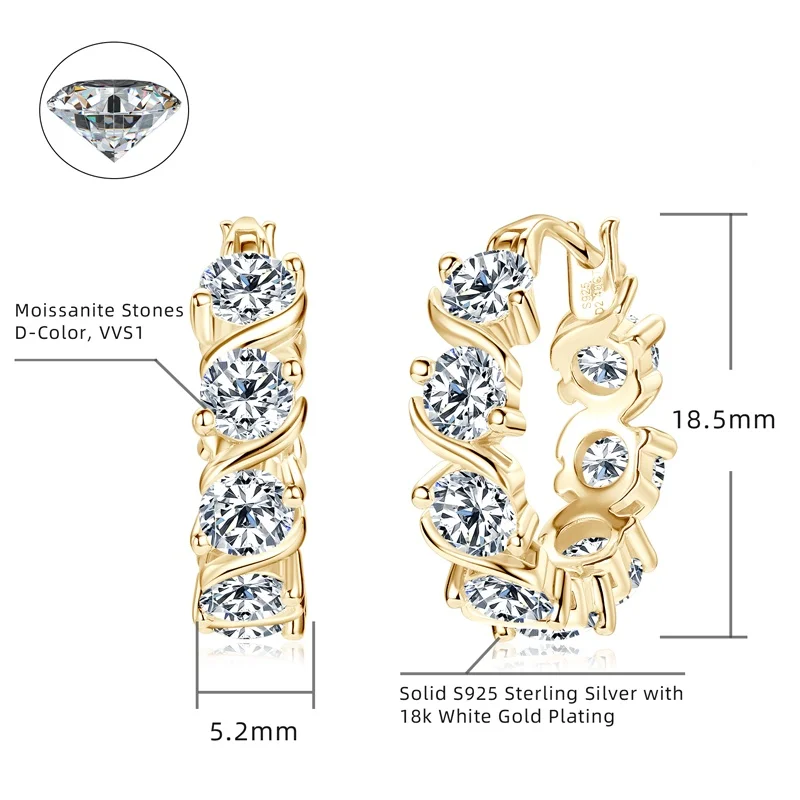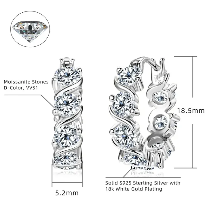 Luxury 4mm 2.4carat All D Moissanite Diamond Hoop Earrings for Women Engagement Wedding Original 925 Sterling Silver Jewelry