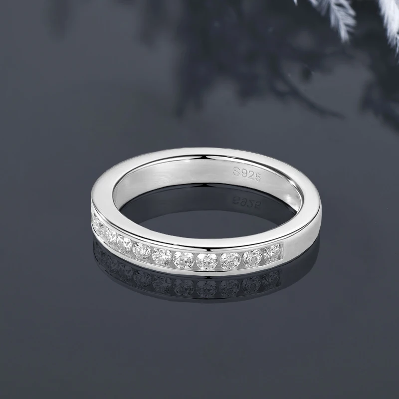 IOGOU 2mm Moissanite Ring Channel Set Full Eternity Band 925 Silver for Women Men Couples Gold Plated Certified Finger Jewelry