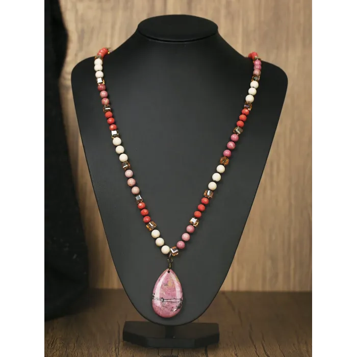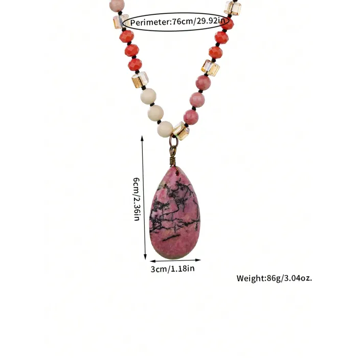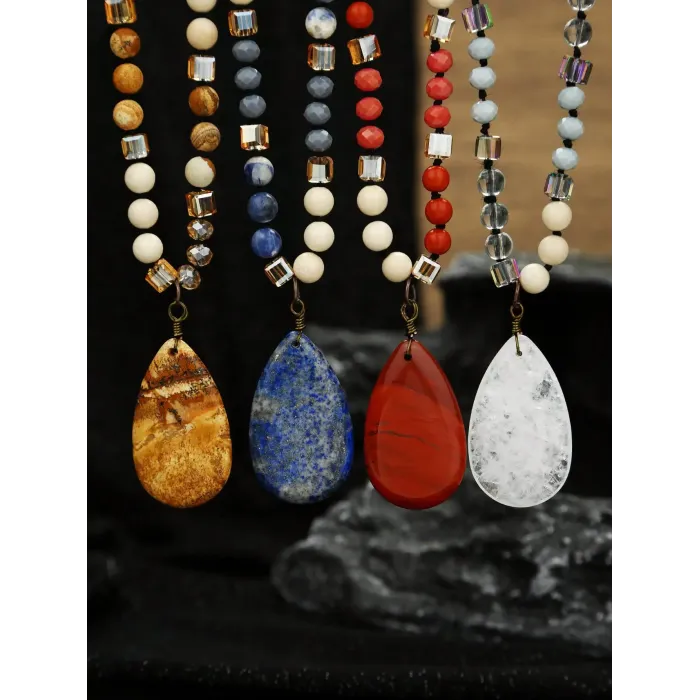 Handmade Long Necklace with Blue Lapis Lazuli Pendant, Natural Stone & Crystal Beads, Boho Style