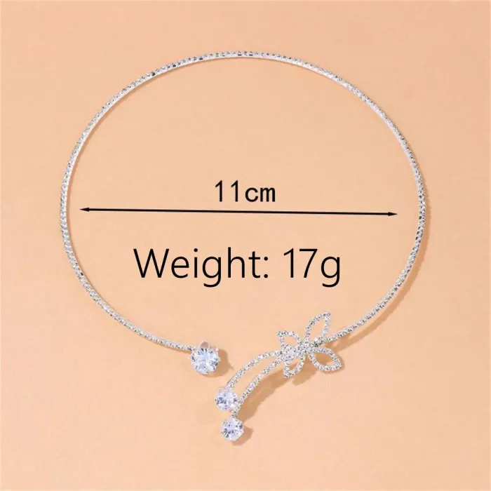 Rhinestone Floral Choker Necklace with Bowknot Detail for Women