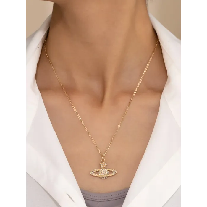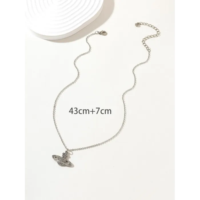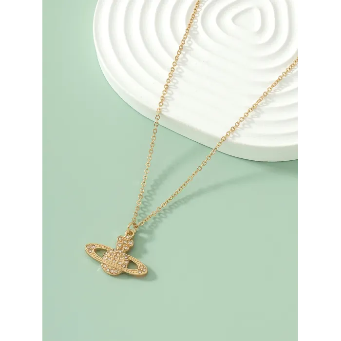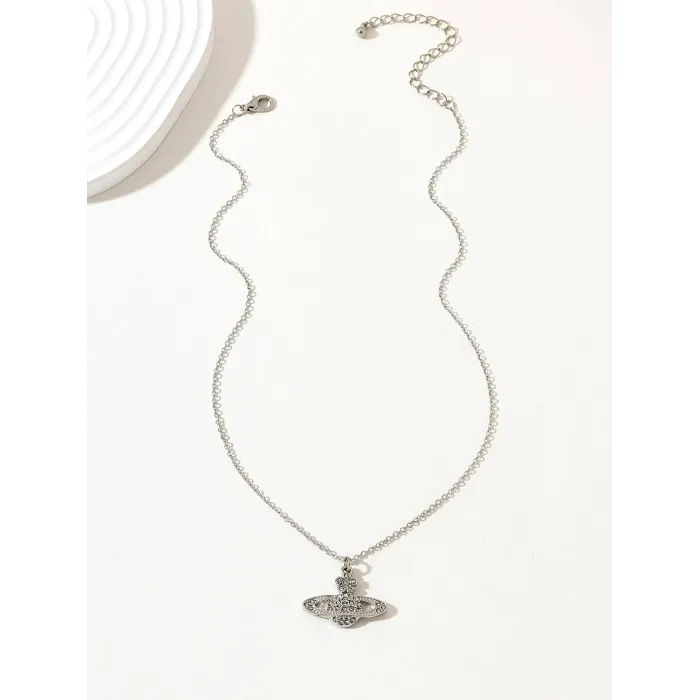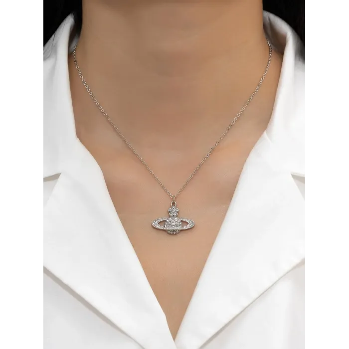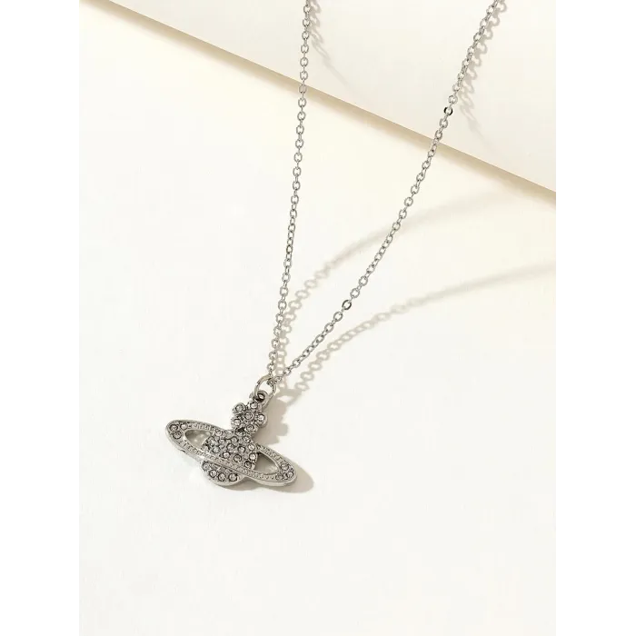 Silver-Tone Rhinestone Planet-Style Pendant Necklace for Women