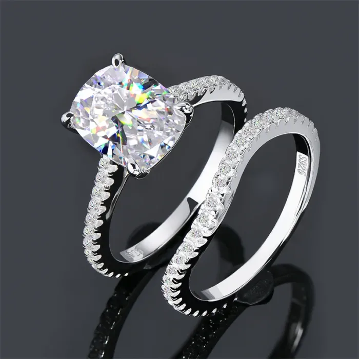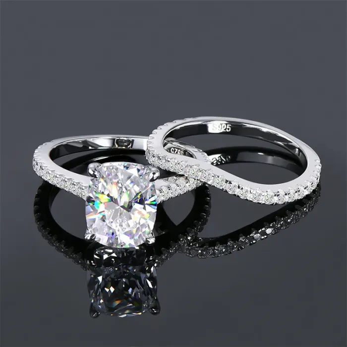 8x10mm Cushion Cut Cubic Zirconia Engagement Ring Wedding Ring Set for Women Real Silver 925 Wedding Engagement Fine Jewelry
