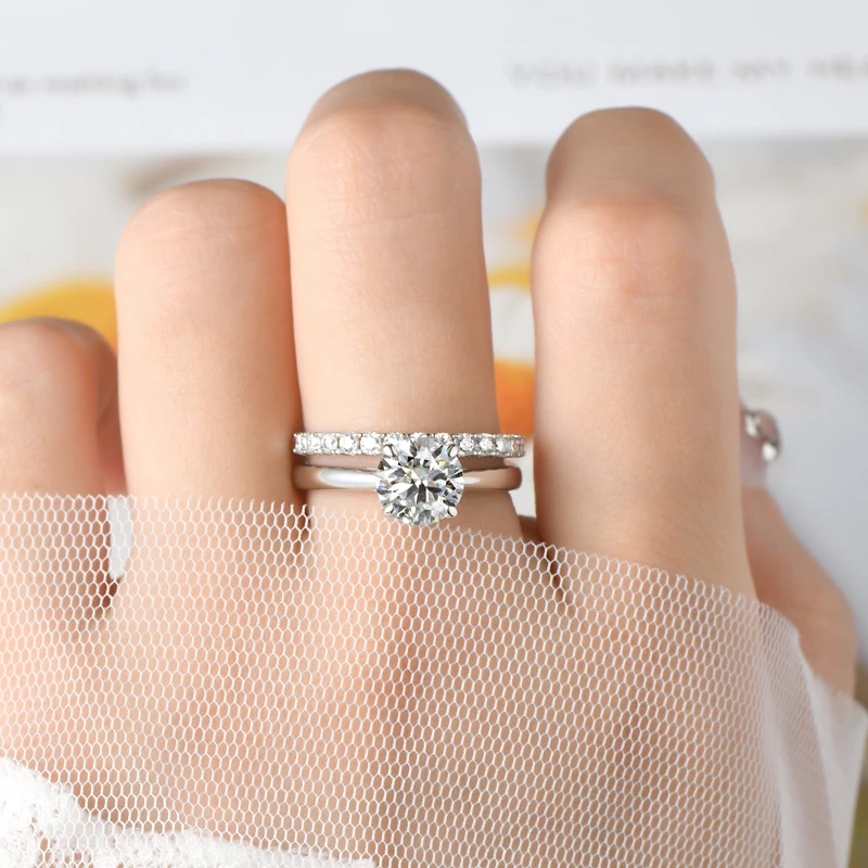 IOGOU 2ct 8mm D Moissanite Solitaire Ring Set Bridal Sets Real 925 Silver for Women Half Eternity Band Wedding Promise Jewelry