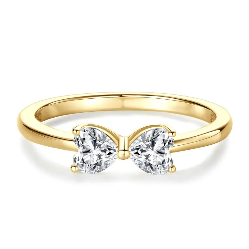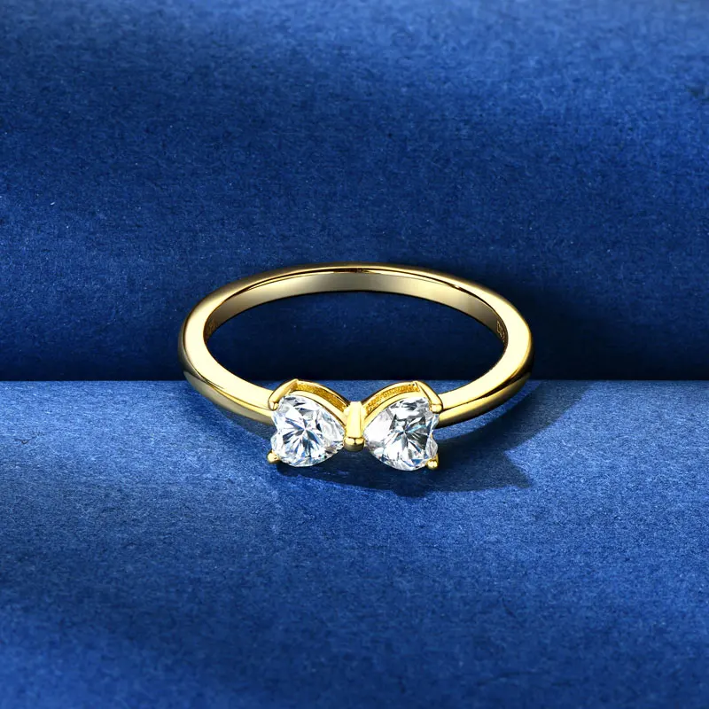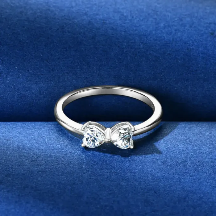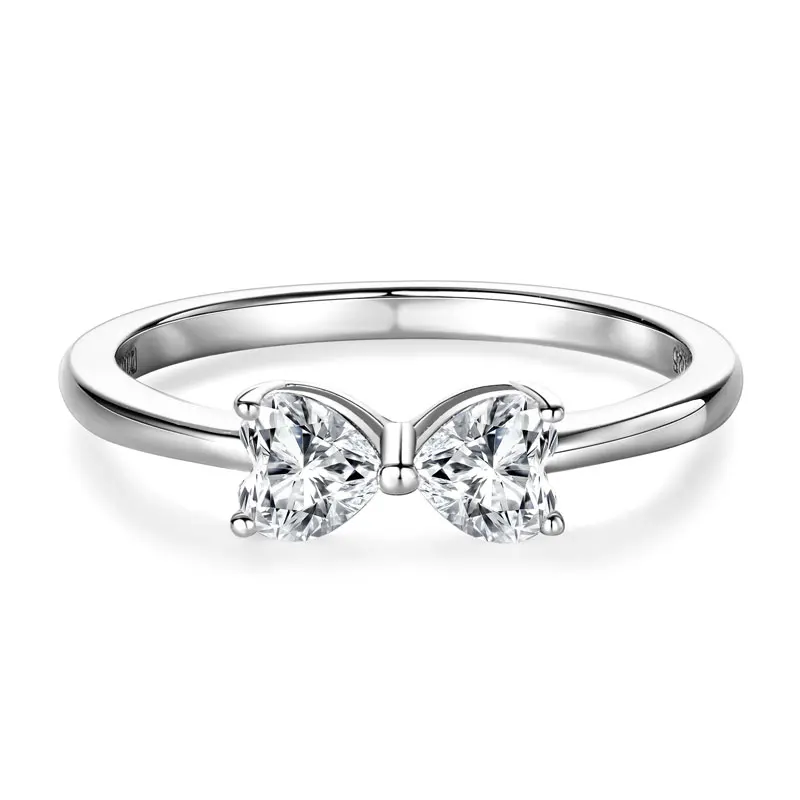 IOGOU 4.5x4.5mm Heart Cut Moissanite Diamond Ring for Women Real 925 Silver Bow knot Finger Ring 2025 Trend Fine Jewelry 0.8cttw