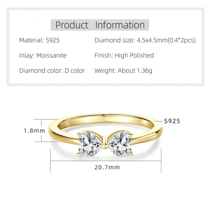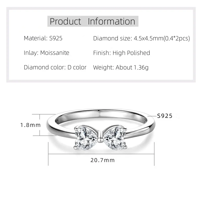 \nIOGOU 4.5x4.5mm Heart Cut vvs1 Moissanite Diamond Engagement Ring for Women Real 925 Silver Bowknot Wedding Ring Trendy Jewelry