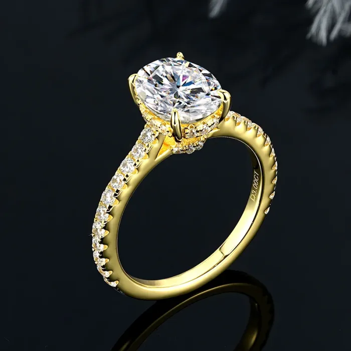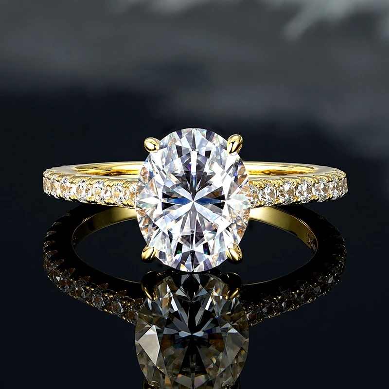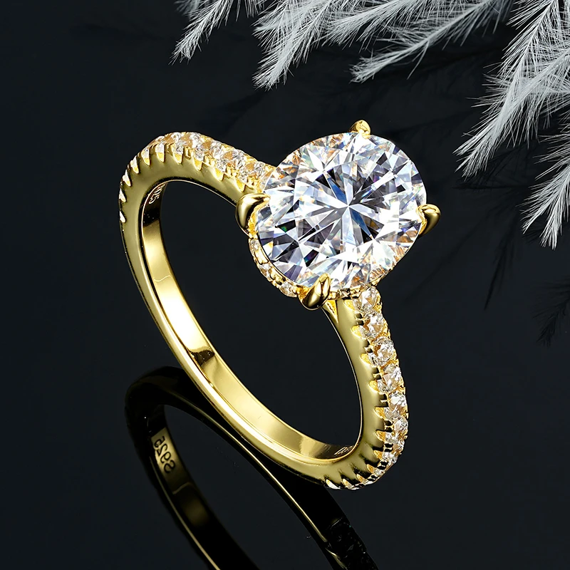 IOGOU Main Diamond Oval Cut 3CT Moissanite Engagement Ring for Women Genuine 925 Silver Classic Wedding Fine Jewelry Accessories