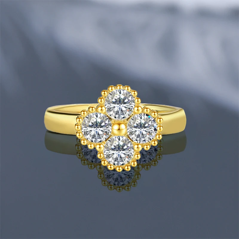 IOGOU Cute 4mm Moissanite Clover Flower Ring Band Gold Plated 18k 925 Silver for Women gra Certified Finger Jewerlry Valentine's
